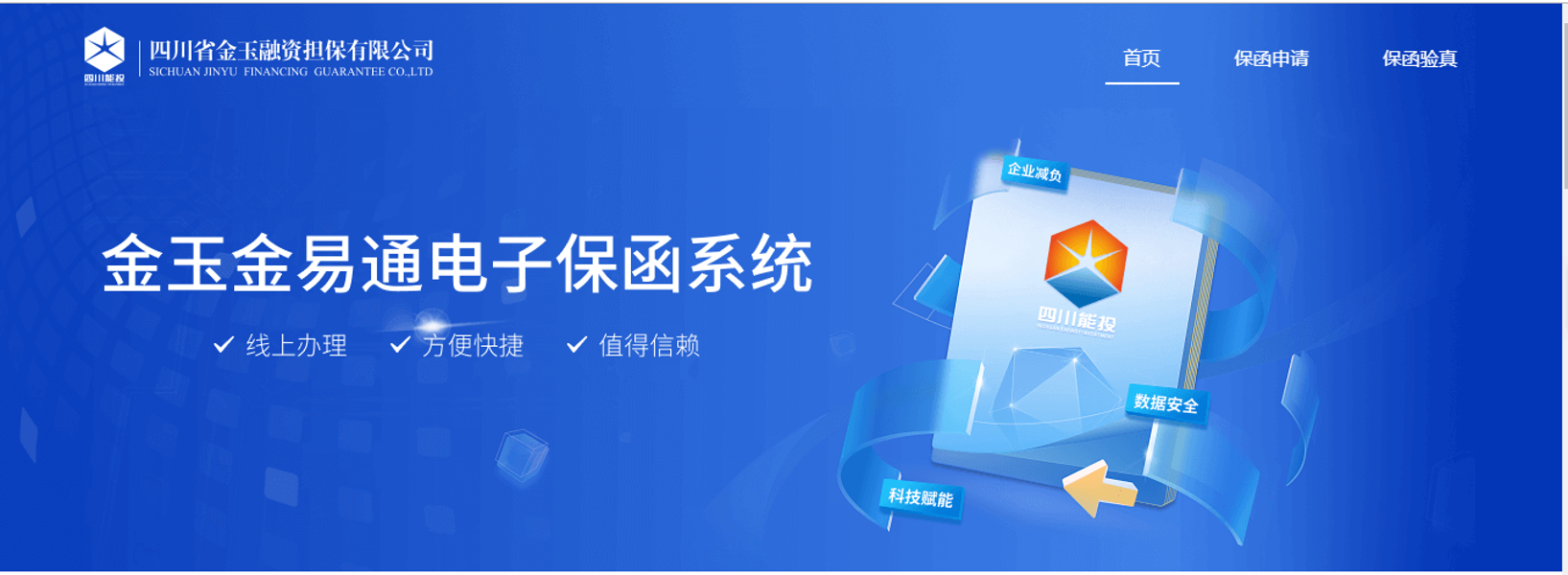 金玉金易通一期项目实现了电子保函业务全流程线上化:支持在线申请、保函协议线上签约、保证金线上缴存、保函线上签发、线上索赔、发票线上申请、费用清算、保函状态查询等功能。此外,还可在线为工程建设方提供履约保函、投标保函、农民工工资支付保函等多种保函业务品种及与非融担保业务服务。客户通过金玉金易通,采用CA证书电子签名技术,由金玉担保向受益人出具具有法律效力的电子保函。与纸质保函相比,电子保函具有在线处理、有效识别虚假保函、保函备案方便、可视化管理、全程电子化追溯等优势。