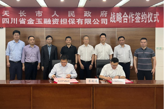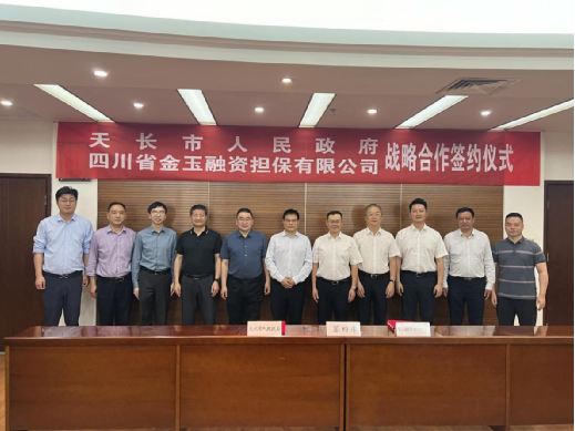 为进一步支持地方经济发展,深化多领域、全方位合作关系,5月14日,金玉担保与天长市人民政府在皖签署《战略合作协议》。天长市市委常委、常务副市长王飞,四川能投金鼎集团副总经理兼金玉担保党支部书记、董事长何强分别代表双方签订协议。天长市委市政府及金玉担保相关领导参加签约仪式。